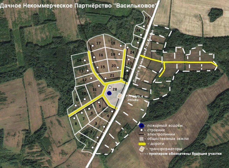 План дорог, участков. Всё размежёвано. На дороги выделено вместе с канавами 12 метров. Знаю поселения, где на дороги 5 метров выделено. А что будет с этими пятью метрами, когда канавы для стока воды будут проведены? Вот, вот.. Чтобы полоса проезжей части была пять метров, полосы выдела на дороги должна быть 12 метров. И это должна быть общественная территория! Чтобы никогда, никаких споров между соседями из за дороги не было! На электросети 5 метров. И это общественная земля. Это важно. А то во многих поселениях электричество прямо по участкам повели... В одном нам знаком поселении у председателя лежит три заявление хозяев - снимите столбы с моего участка. Имеют право. А вся улица окажется без электричества. Дорожные и электрические сети должны быть только на общественной территории!